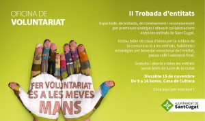Des de l’Oficina de Voluntariat us volem convidar a la II trobada d’entitats: Una jornada de coneixement i reconeixement adreçada a professionals, persones voluntàries i membres